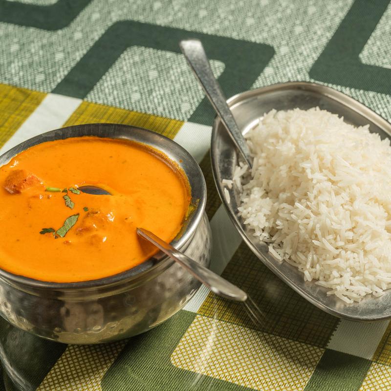Creamy curry cooked with ginger, garlic, onion, tomatoes, cashew nuts, raisins and spices.